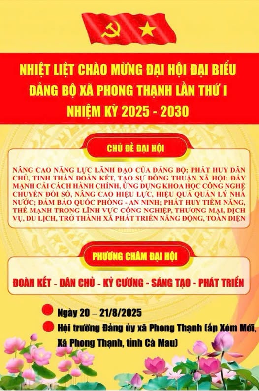 ĐẠI HỘI ĐẠI BIỂU ĐOÀN TNCS HỒ CHÍ MINH XÃ PHONG THẠNH LẦN THỨ I, NHIỆM KỲ 2025 – 2030