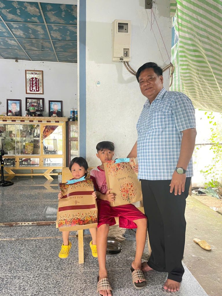 Lãnh đạo Đảng ủy – HĐND-UBND-UB MTTQ VN xã thăm và tặng quà cho các em thiếu nhi